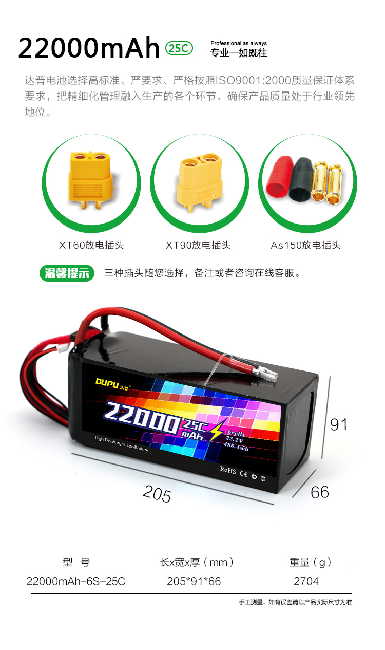 22000mAh 6S 25C XT90 AS150 22.2V
