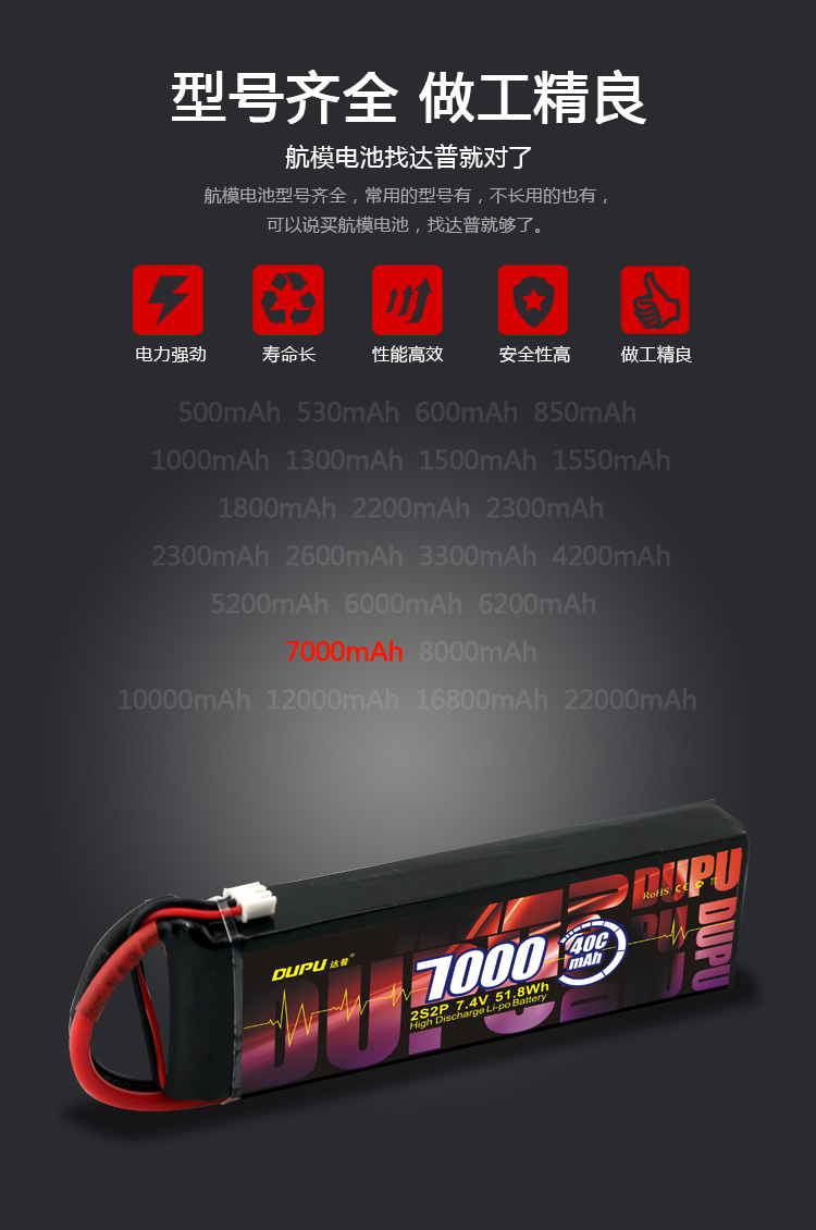 7000mAh 7.4V(2S) 40C 7000mAh 14.8V(4S) 40C 7000mAh 14.8V(2S) 60C
